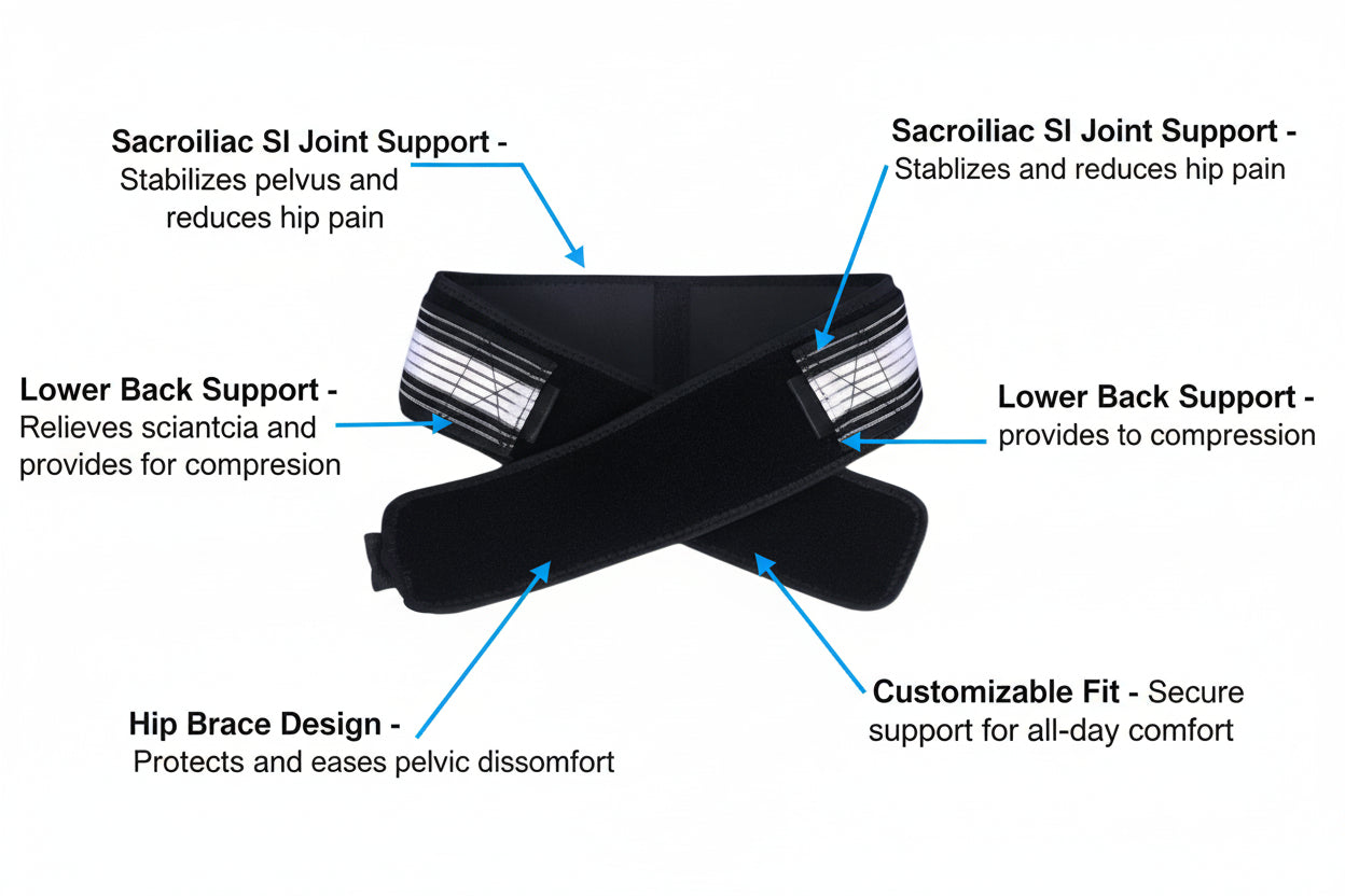 The Levana Belt' wraps snugly around your pelvis and lower back with an adjustable elastic pressure system tailored to your sacrum size. Once positioned, the targeted compression instantly stabilizes your SI joint and reduces stress on the surrounding muscles and nerves. Wear it during any activity—sports, sitting at a desk, standing for long periods, or even overnight—and feel immediate relief from sciatica pain and pelvic instability. The lightweight, breathable fabric keeps you comfortable all day, while the anti-slip material prevents shifting so support stays consistent.